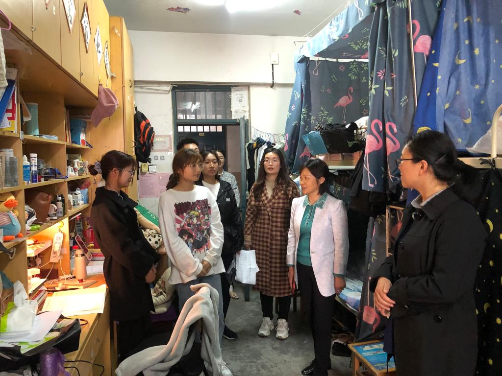 每到一个宿舍,郭桃芬一行对宿舍进行了安全隐患排查。同时,与同学们进行亲切交流、谈心,进一步了解同学们的思想、学习、生活等情况,教育同学们要严格遵守学校的宿舍管理规定,提高安全防范意识,注意宿舍用电安全和财物安全。强调春季是各类传染病的高发期,要注重宿舍卫生,增强自我健康意识,保持良好卫生习惯,养成健康饮食作息习惯,同学间和睦相处,营造良好的学习生活氛围。