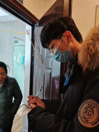 2019级生物科学师范一班的赵晶晶,负责对返乡人员到家时进行登记,帮助他们进行注册登记并激活医保。谈到防疫工作,她骄傲地说:“我很高兴也很自豪可以志愿出力,帮助他人。我是一名大二学生,同时也是一名入党积极分子,我更有责任和义务参与到疫情防控工作当中。作为新时代的大学生,自疫情开始我们始终怀有这样的意识:有需求就有我们在,志愿工作从不缺席。”