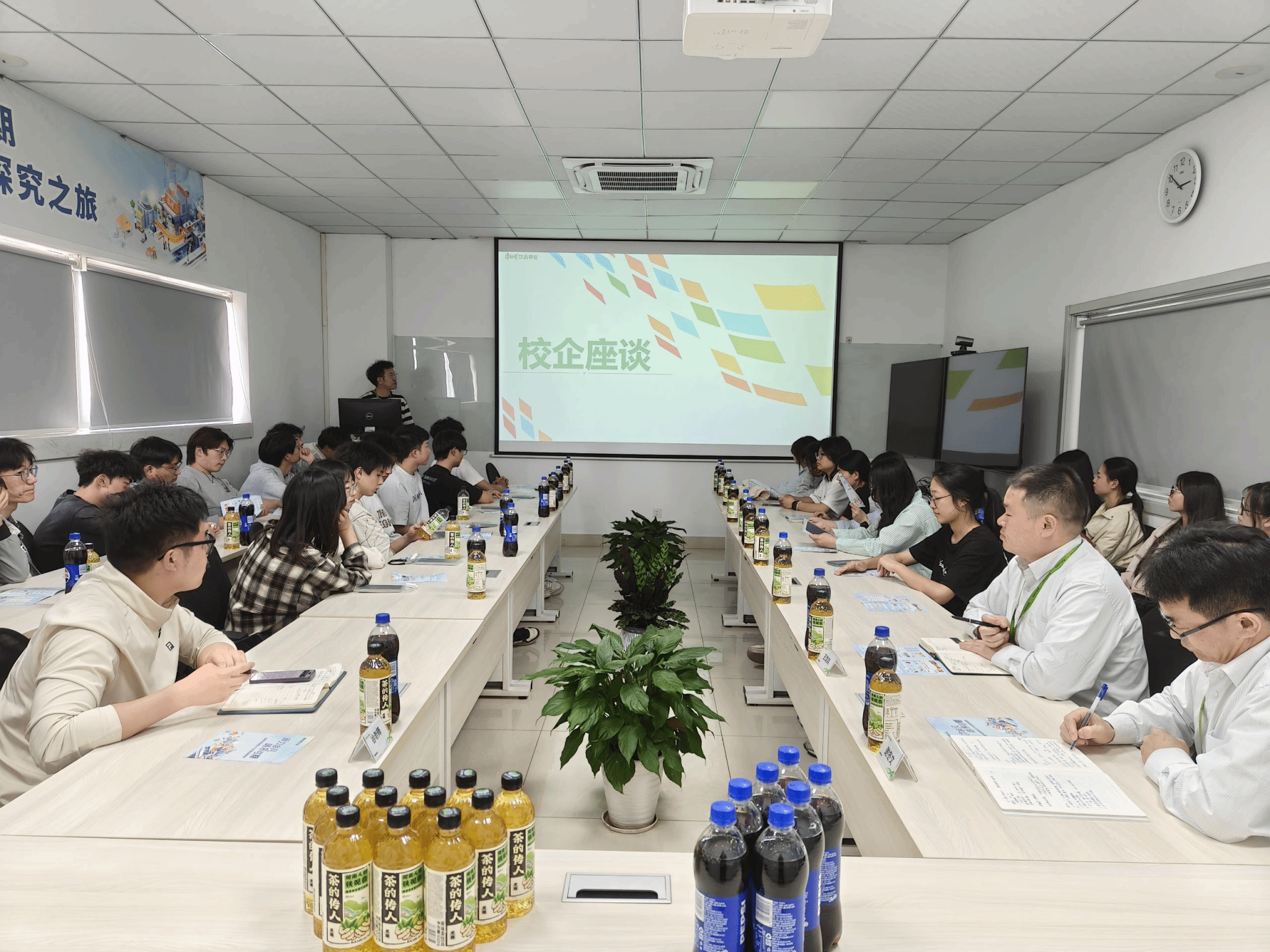 徐浩然等人在王龙兵带领下参观了企业现代化生产车间、品控实验室及研发中心,详细了解饮料生产流程、质量管理体系及技术创新方向。