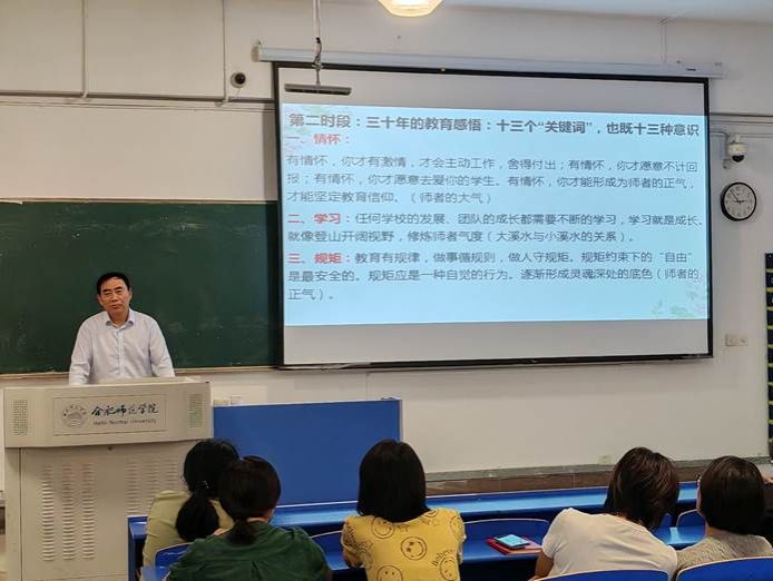 吴老师强调,教育不仅是知识的传递,更是灵魂的塑造。他鼓励青年教师和师范生坚守教育初心,注重教学反思与专业成长,在实践中不断提升教育教学能力,真正做到“铸魂强师”。