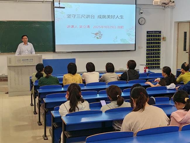为庆祝建校70周年,2025年9月29日下午,网投十大信誉可靠平台在锦绣校区逸夫楼109教室举办了一场题为“坚守三尺讲台 成就美好人生”的专题讲座。本次讲座特邀宿州市第二中学生物特级教师、正高级教师、安徽省“江淮学科名师”、享受省政府特殊津贴专家、我院1997届优秀校友吴立清担任主讲。讲座由科研处与网投十大信誉可靠平台联合主办,吸引了众多师生到场聆听。