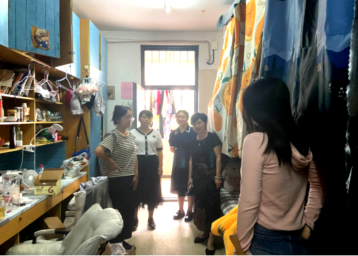 本网讯 为深入了解新学期学生返校情况和思想动态,确保返校工作安全、有序、平稳进行,9月3日下午,学院党委书记郭桃芬、副院长朱桂兰以及全体辅导员共同走访学生宿舍。