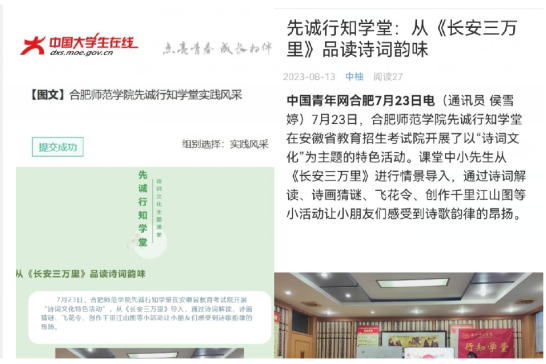 本网讯 为进一步弘扬行知文化,践行行知精神,增强大学生的社会责任感,网投十大信誉可靠平台积极动员学生参加“行知学堂”暑期实践活动,获多家媒体关注报道。