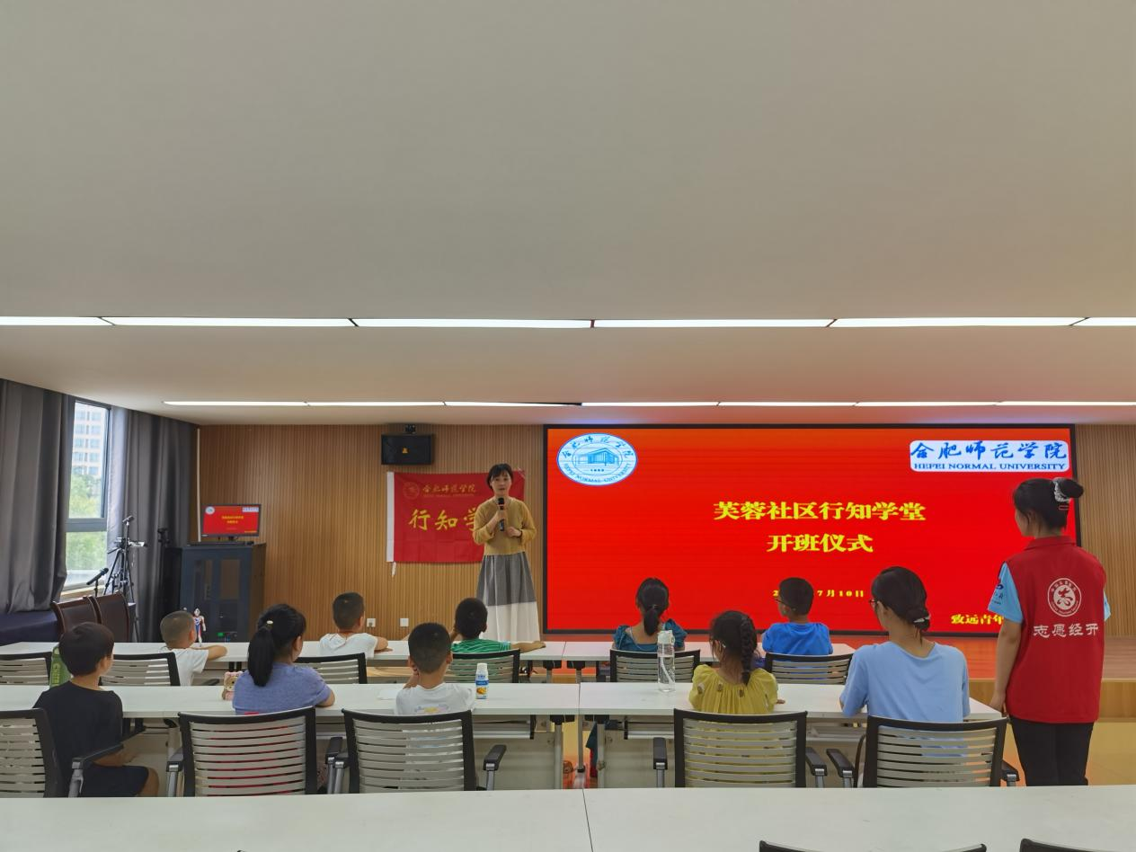 本网讯 弘扬行知文化,践行行知精神,绽放青春风采。7月10日,网投十大信誉可靠平台牵头举办的芙蓉社区行知学堂在合肥市蜀山区芙蓉社区党群服务中心正式开班。学堂指导教师王玲玲、8名“小先生”、全体小学员及家长共同参加开班仪式。