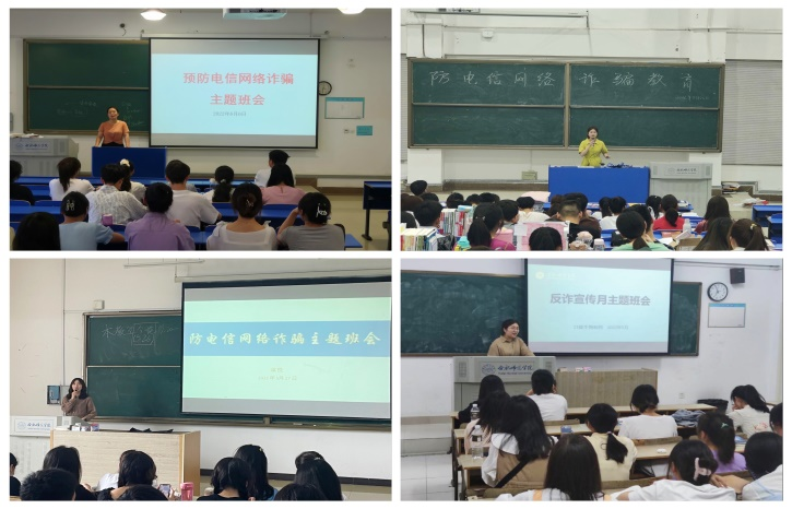 此外,辅导员们通过班级QQ群和微信群实时转发校保卫处发布的《锦绣派出所-每日电诈警情通报》、《锦绣派出所-警方通报-简要案情》等宣传材料;通过走访宿舍,检查学生安装国家反诈APP情况以及是否完成“四个必须”;利用谈心谈话,了解学生日常的消费情况和思想动态,及时发现安全隐患并解决问题;班委利用晚自习时间,在班级宣读《网投十大信誉可靠平台保卫处反电信网络诈骗警示通报》,加大反诈骗知识宣传,并通过拍摄反诈骗话剧宣传视频,进一步提高同学们的反诈意识。