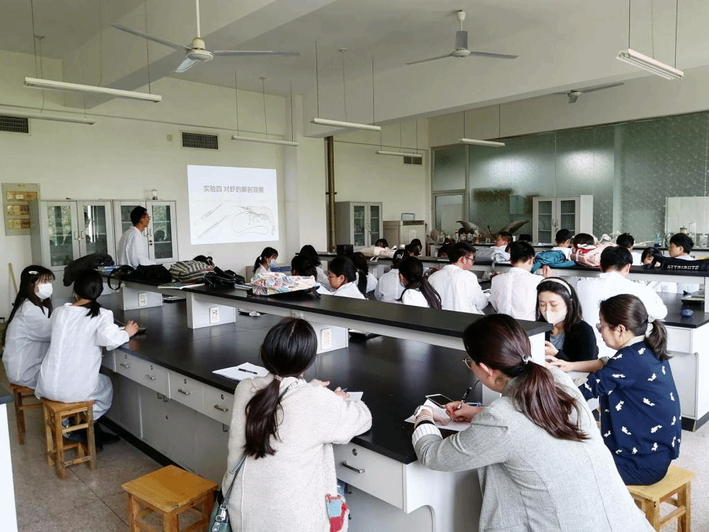 张老师本节课的授课主题为《动物学实验》中的实验四:对虾的解剖观察。在课堂教学中,张老师精神饱满,教态自然得体,对课程内容总体把握良好,积极与学生互动交流,课堂气氛活跃,学生学习效果较好。
