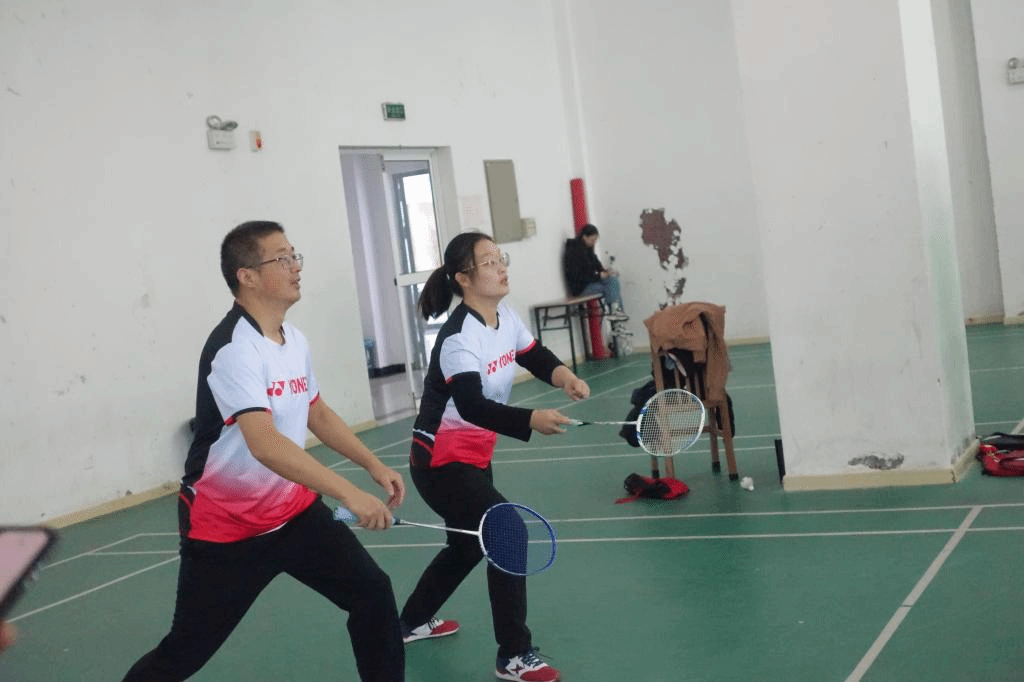 经过初赛的选拔,16组师生队伍进入决赛。其中教师队伍8支,学生队伍8支。赛程分别为16进8、8进4以及冠亚季军争夺赛。第一轮比赛,教师组和学生组分别抽签两两进行比赛。“推,扑,杀,吊”一个个精彩的回球为在场观众带来视觉与心灵的冲击。选手们目光紧锁空中飞舞的羽毛球、竭尽所能与对手进行较量,充分发扬了勇于拼搏、不断进取的竞技精神。