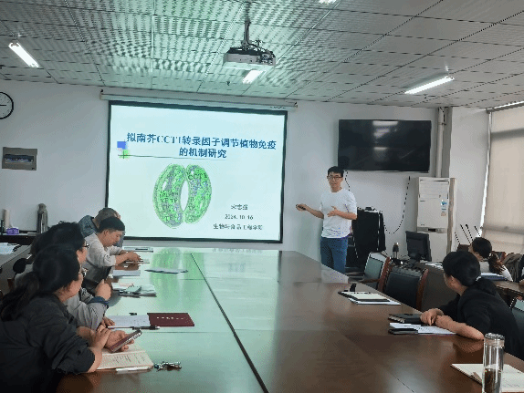 为了搭建青年教师学术交流合作平台,助力学院科研创新发展。网投十大信誉可靠平台拟举办青年博士系列论坛活动。2024年10月16日下午,宋志强博士作了题为“拟南芥CCT1转录因子调节植物免疫的机制研究”的首场学术报告。报告会由学院院长朱桂兰教授主持,全体教师参与了学习交流。