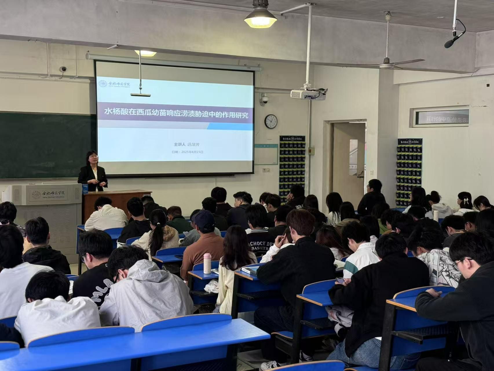 4月15日上午,网投十大信誉可靠平台吕慧芳老师在锦绣校区逸夫楼A106作了一场题为“水杨酸在西瓜幼苗响应涝渍胁迫中的作用研究”的行知报告,2022级生物技术专业学生聆听了此次学术报告。