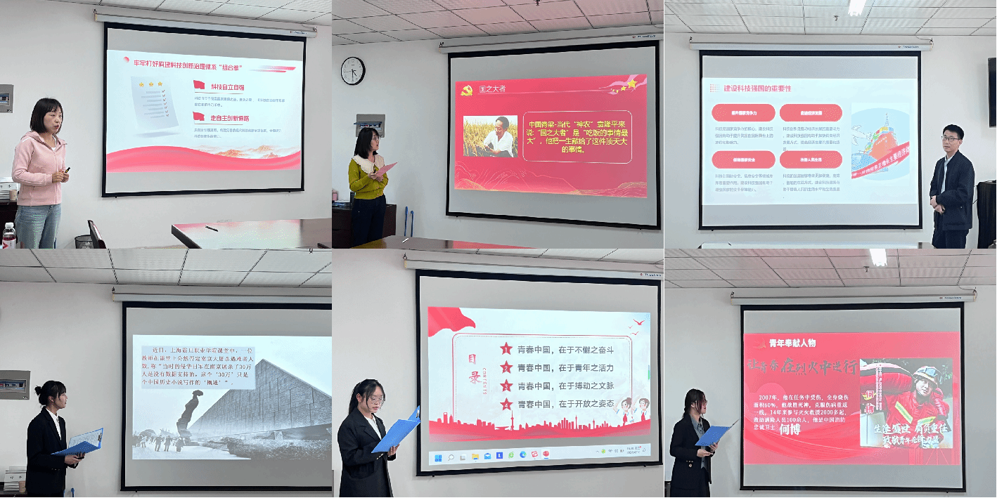本次比赛面向全体师生党员,师生党员同上一堂微党课。经支部推荐,共7名选手参赛。选手们充分利用多媒体等表现形式,把握微党课“以小见大、见微知著”的特点,分别结合党的理论、百年历史、英雄事迹和精神谱系,讲述了一堂堂生动、丰富、精彩的微党课。朱玉老师的微党课《粮心•国之大者》讲述了科技工作者怀揣良心育良种、呼吁大家节约粮食,讲良心的故事;宋志强的微党课《科技创新引领未来:中国国际空间站的探索之路》传播航空航天文化,传递爱国情怀;高阳的微党课《实施科教兴国战略 强化现代化建设人才支撑》详细阐述了党的二十大报告中“实施科教兴国战略,强化现代化建设人才支撑”的重大决策,结合工作实际,表达了勇担责任,坚守为党育人、为国育才的初心使命;陈子凡同学的微党课《赓续文脉,你我共守—做中华优秀传统文化的坚定继承者和践行者》探讨了大学生该如何继承和践行中华优秀传统文化;闫祉彤同学的微党课《赓续红旗渠精神,争做新时代有为青年》描述了红旗渠精神以及如何传承红色精神、争做新时代有为青年;李娟的微党课《永远跟党走,奋进新征程》回顾了党的百年奋斗历程,表达了以青春之名,扬奋斗之志的决心;庞宇晴同学的微党课《弘扬伟大建党精神,争做时代好青年》呼吁新时代青年践行“请党放心、强国有我”的青春誓言。