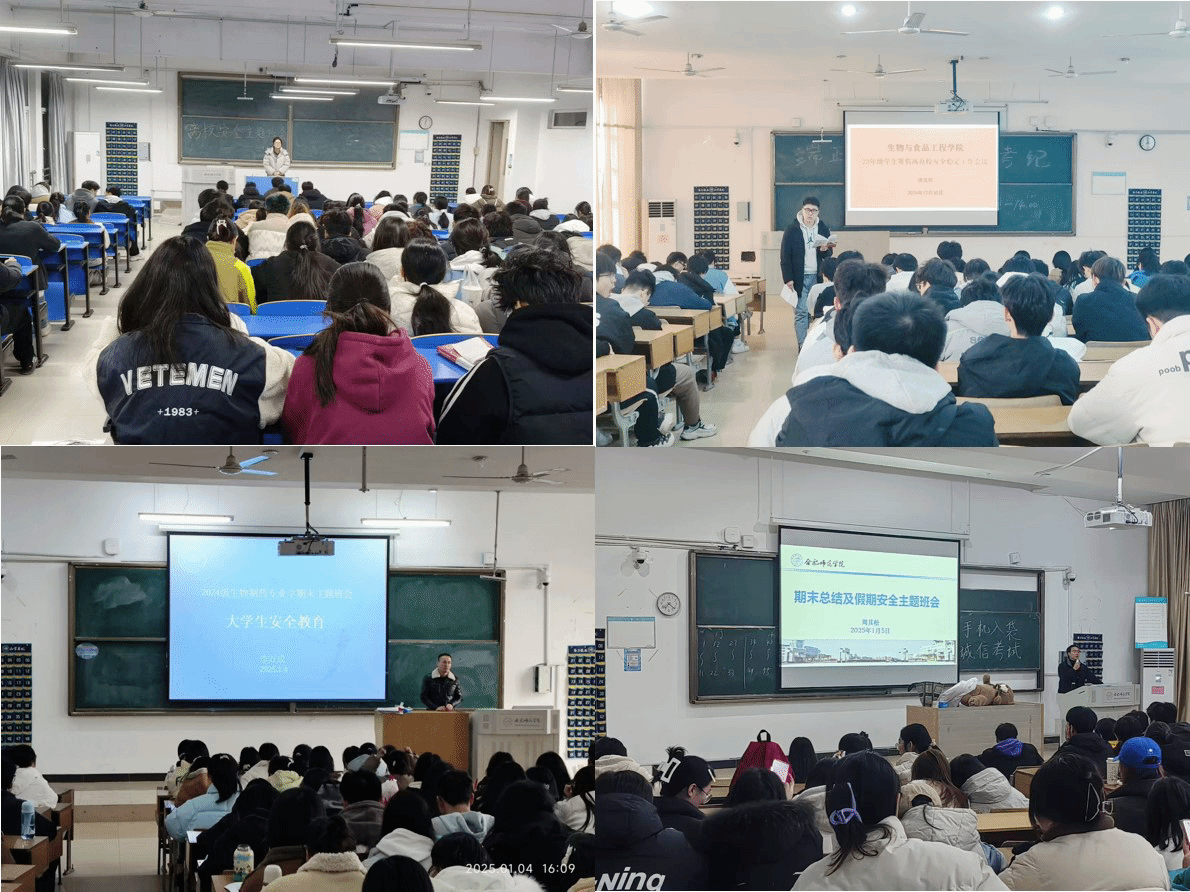 主题班会上,辅导员老师们结合一学期来各班级的综合表现进行了总结,鼓励同学们继续努力,更进一步。紧接着,辅导员老师向同学们传达了学校及学院期末相关工作安排,其中重点强调了要加强复习备考,严守考风考纪,共同营造诚信考试的良好考风。对于即将到来的寒假,辅导员老师首先着重提醒同学们在离校前务必检查宿舍电源,确保断水断电关好门窗再离校,消除潜在的火灾风险,注意离校安全。同时就寒假期间的人身安全、财产安全、消防安全、交通安全、饮食安全、防范电信诈骗及极端天气灾害防范等方面进行了强调提醒。