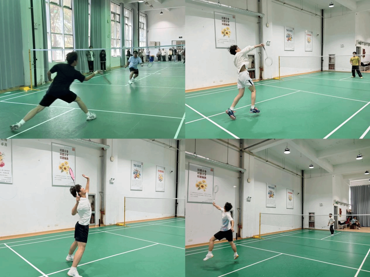 本次赛事分为男单和女单两个项目,采用晋级赛制。比赛现场,选手们精神饱满、身手敏捷,强有力的挥拍、精准的扣杀与巧妙的网前小球轮番上演,精彩对决高潮迭起,充分展现了生食学子昂扬向上、勇于拼搏的青春风采。