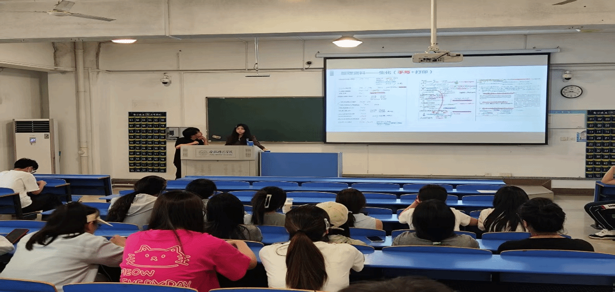 为帮助2024级生物制药(专升本)专业学生科学规划考研复习,5月28日,班级组织开展了班级考研经验交流会。本次交流会邀请2021级成功考取中国科学技术大学的阳俊毅、余佳颖两位同学,为备考同学传授经验、答疑解惑。2024级生物制药(专升本)专业全体学生参加,讲座由学生第二党支部书记、辅导员徐浩然主持。