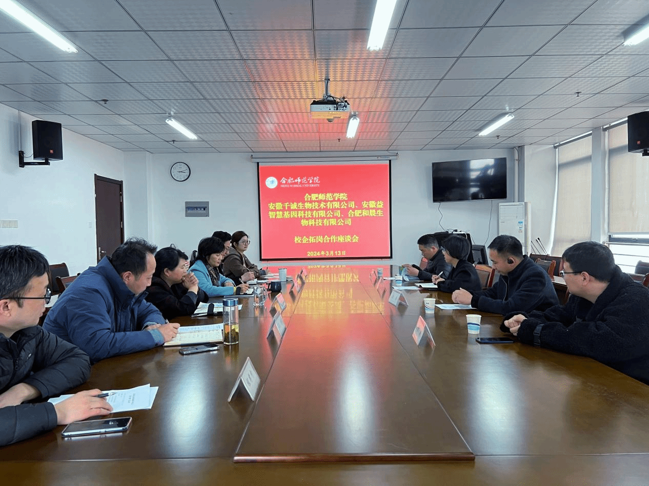 为进一步落实“访企拓岗促就业”专项行动,推进校企产教融合,加快推进2024届毕业生就业工作,3月13日下午网投十大信誉可靠平台邀请安徽千诚生物技术有限公司、安徽益智慧基因科技有限公司、合肥和晨生物科技有限公司来校举行合作洽谈会。网投十大信誉可靠平台党委书记郭桃芬、副院长朱桂兰、党委副书记马喆、副院长王伟、食品质量与安全系主任程孝中、毕业班辅导员黄洁参加座谈,会议由马喆主持。