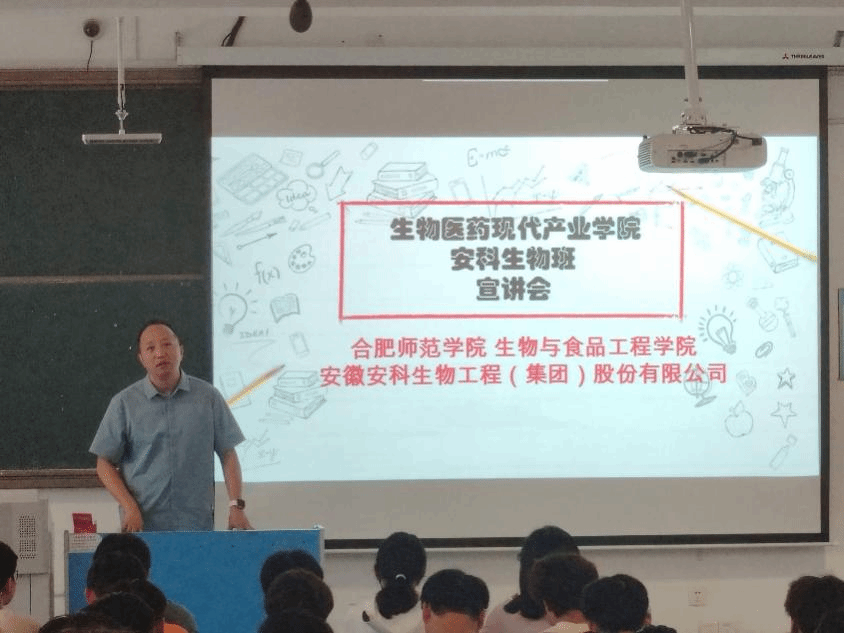 随后,陈金武详细介绍了现代产业学院在课程设置、师资力量、实践教学等方面情况,以及合作企业——安科生物的发展历史及现状,并就学生未来的就业前景和发展方向进行了深入剖析。他通过生动的案例和详实的数据,展示了现代产业学院在人才培养上的强大实力和创新能力。