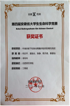 生物技术专业一直非常重视并鼓励学生参加全国生命科学大赛,安徽省生物标本大赛,大学生创新创业大赛等省级以上技能和科技竞赛活动,并精心组织学生参加比赛,选派有经验的教师指导,为学生提供实验场地。通过各种竞赛活动,提高了学生课内外科技活动的积极性,活跃了学习气氛,达到了以竞促学的目的。我专业学生在各种技能和科技竞赛中表现突出,获得省部级以上竞赛奖励40余项,其中国家级比赛金奖1项,三等奖1项,长三角区域级比赛二等奖1项,安徽省省级银奖1项,铜奖1项,省级一等奖2项,省级二等奖6项,省级三等奖8项。