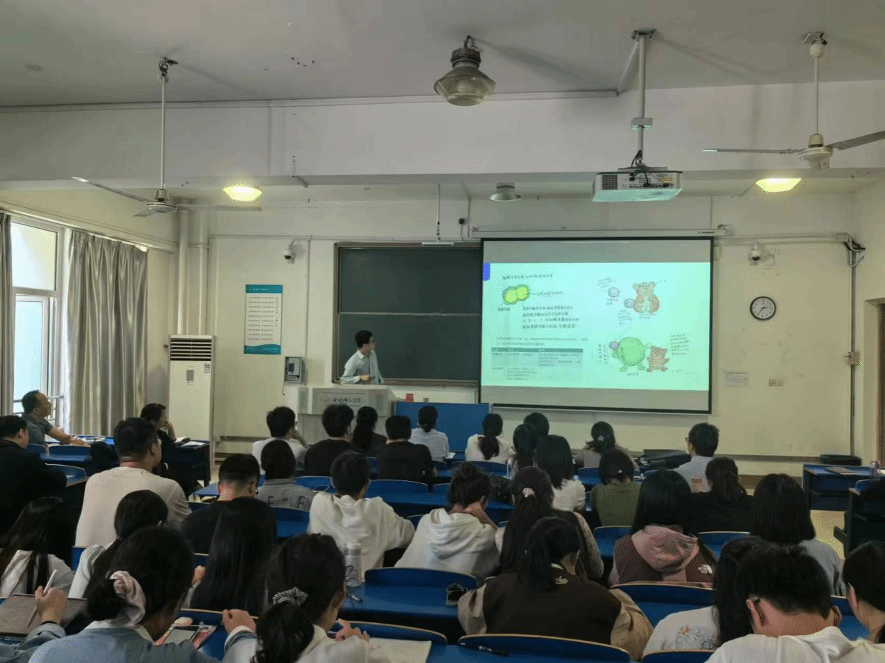窦颖辉副总裁首先深入浅出的讲授生物药的内涵和优势,分析了疫苗、抗体药物、小核酸药物和免疫细胞治疗的研究现状及其发展趋势。随后分享了安科生物的发展历程,介绍了安科生物基因检测、靶向抗肿瘤药物开发、细胞免疫治疗技术等一系列精准医疗产业布局。最后窦总帮助学生了解专业前景和未来职业发展方向,强调生物医药产业的发展不仅需要良好的市场,更需要多方面的人才参与协作,希望同学们能重视专业学习,成为优秀的生物医药人才。