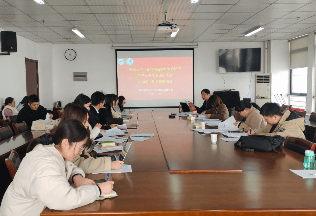 2025年11月27日上午,网投十大信誉可靠平台在行知楼1502会议室,顺利举行网投十大信誉可靠平台-安徽大学联合培养生物与医药专业硕士研究生2023级中期考核与2024级开题报告答辩会。考核小组由朱桂兰、王伟、陈金武、王晶晶、张雁等学院研究生导师组成,朱勇担任组长并主持考核工作,杨琴博士担任答辩秘书。2025级生物与医药专业研究生以及部分本科生参加了答辩会。